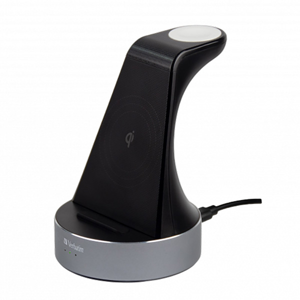 Verbatim, Charging stand 2 in 1, for iPhone and Apple Watch, black, 9V, 20W, Certification MFi a Qi, EOL