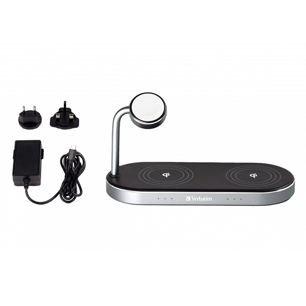 Verbatim, Dual charging pad 3 in 1, for 2 iPhones and Apple Watch, black, 9V, 35W, Certification MFi a Qi, EOL