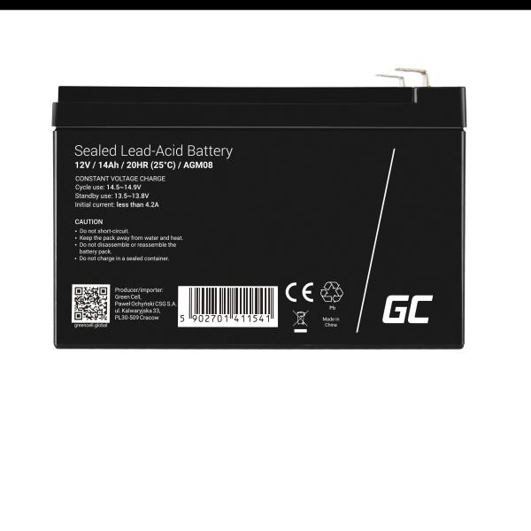 The powerful 12V VRLA AGM battery from Green Cell with a capacity of 14Ah is ideal for UPS systems, emergency lighting, alarms, and other devices requiring stable power supply. It offers a long service life of up to 5 years, maintenance-free operation, and a standard Faston 250 (F2) connector for easy installation.