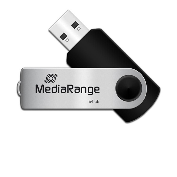 MediaRange USB flash disk, USB USB 2.0, 64GB, black, MR912, USB A, swivel