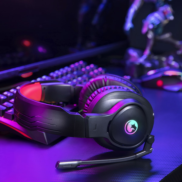 Marvo HG8958 headphones with microphone, wire, black, game, damaged case typ B, 3.5 mm jack + rozdvojka + USB, EOL