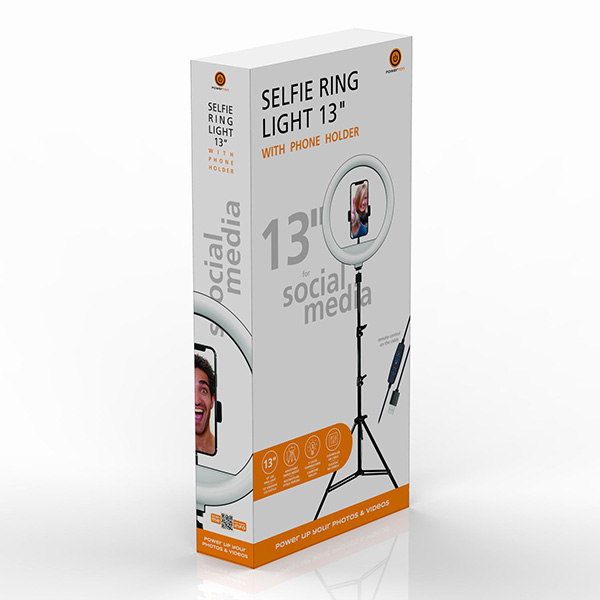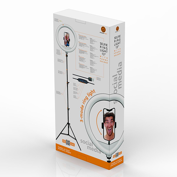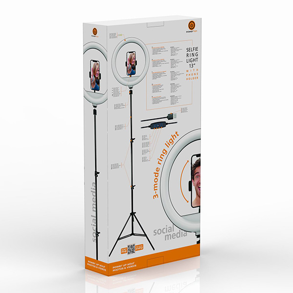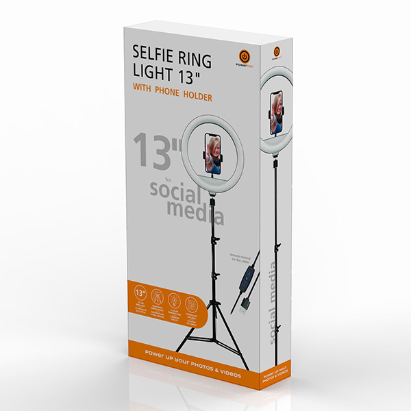 Powerton ring light 13", white LED, big, temperature and luminance setup, phone holder and tripod, damaged case typ B