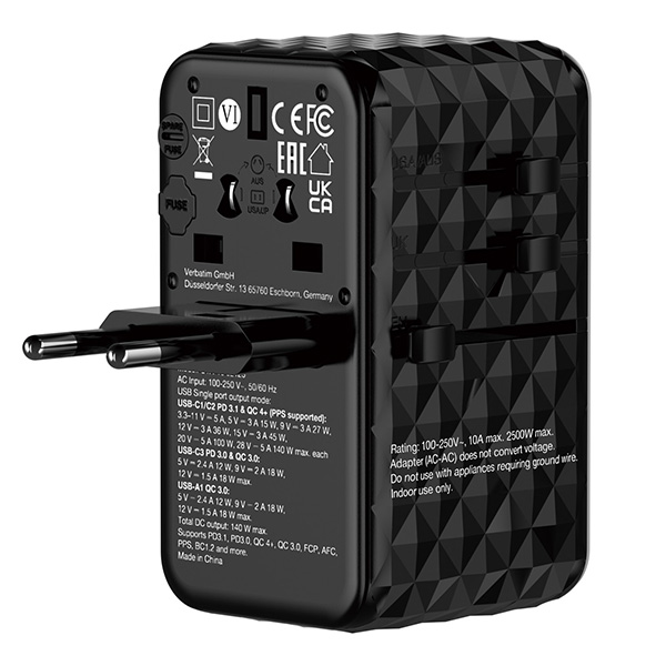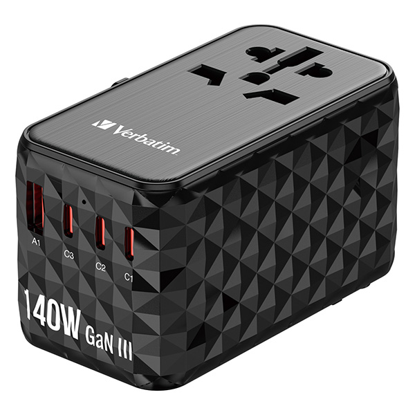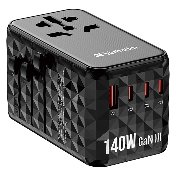 Verbatim, Universal Travel Adapter UTA-10 GaN III 2x USB-C PD a QC 4+, 1x USB-C PD 3.0, 1x USB-A QC, black, 140 W, damaged case B,