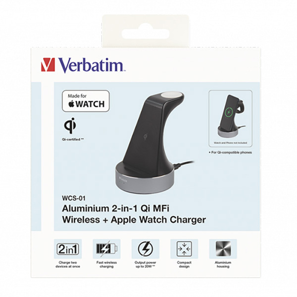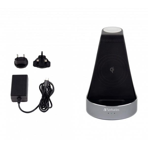 Verbatim, Charging stand 2 in 1, for iPhone and Apple Watch, black, 9V, 20W, Certification MFi a Qi, EOL