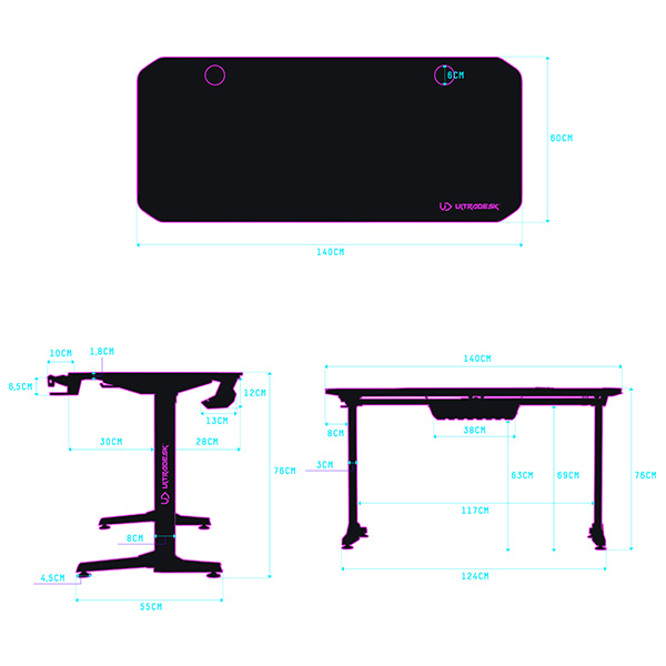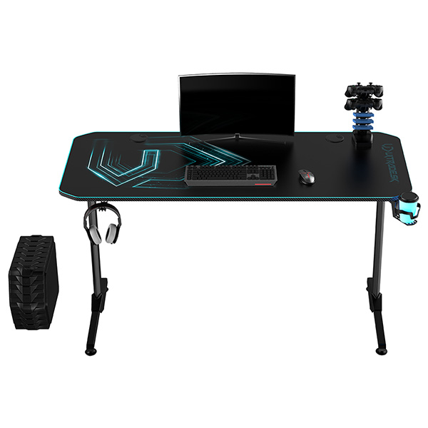 ULTRADESK Gaming table FRAG - BLUE V3, 140x60 cm, 76 cm, with XXL mousepad, with ultradesk BEAM, drinks and headphones holder, dam