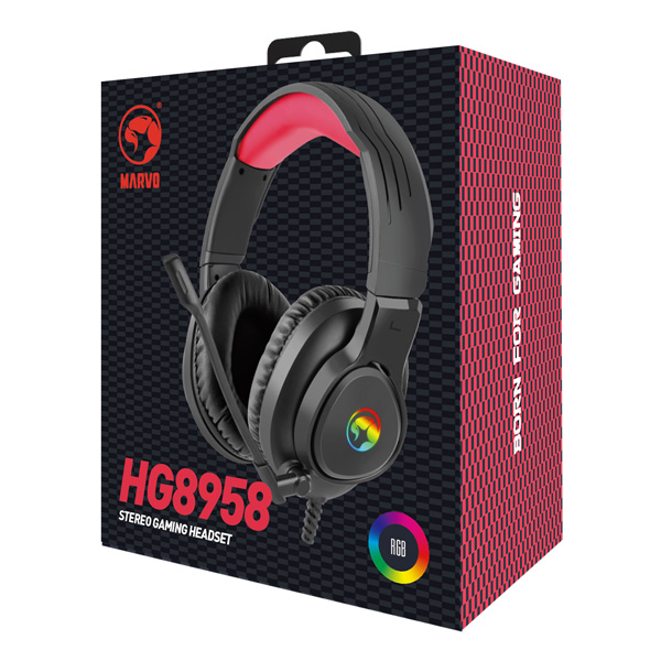Marvo HG8958 headphones with microphone, wire, black, game, damaged case typ B, 3.5 mm jack + rozdvojka + USB, EOL